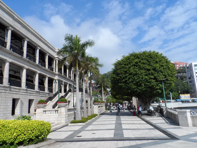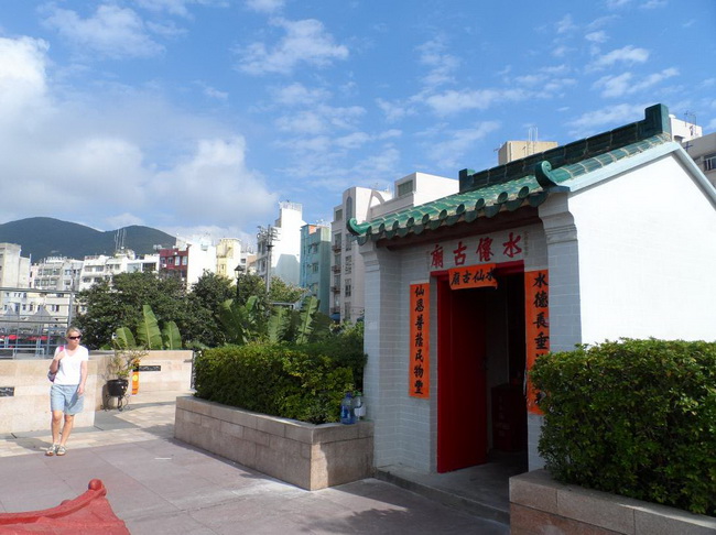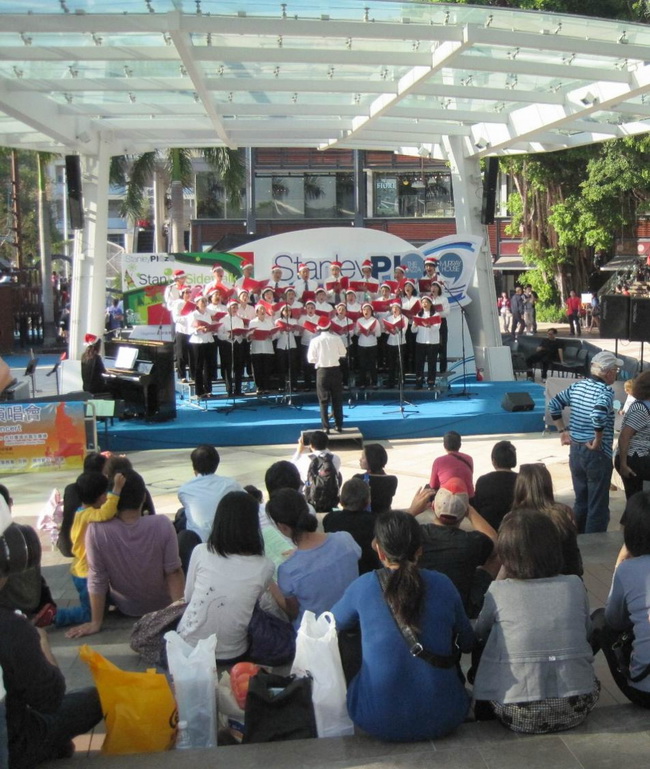 与海滨长廊相邻的赤柱大街是一条布满酒吧、餐饮店的新潮街道。街上游客如织。一位三、四岁大的洋娃,光着膀子,在露天吧座之间跌跌撞撞的跑动。他的妈妈紧跟后面,展现出灿烂的笑容。大街的一头连接着2000年新落成的赤柱广场,这是一处集购物中心与「闲情坊」于一体的现代建筑。购物中心楼高5层,售卖各种名牌货品,商场的中西食肆有各式美味食品。「闲情坊」位于购物中心旁,是一个多用途的户外表演场地。当天下午,有一群头戴圣诞红帽子的青年在「闲情坊」的舞台中央演唱圣诞歌曲,还有小乐队伴奏,吸引了众多的游客驻足观赏。赤柱广场边上,「美利楼」的拱式窗廊前一对新人正在拍摄婚纱照。圣诞的乐韵在耳边飘扬,我忽然觉得彷佛置身于欧洲的一个海边小镇。