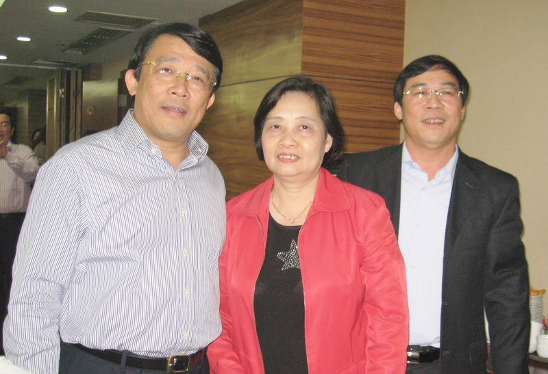 图为:厦大原党委书记、现任复旦大学党委书记朱之文(左)和母校副校长李建发与作者合影。