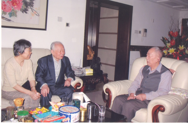 在游击区,他听到毛森在厦门大肆逮捕进步同学,好几位认识的同学被害。解放六十年了,郭大力和陈漪救了他一条命的思想常在他脑中涌现。人在北京,因公来厦门,多次抽空去看望陈漪,关心他的健康。照片中见面是最近的一次。