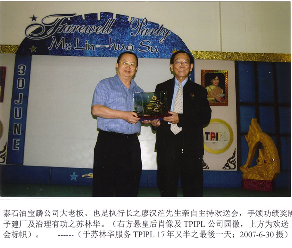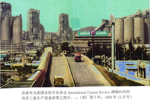 我在泰国期间,均曾是轰轰烈烈之大创举,故我写下本文留下纪录,记下我长达17年半在泰辛勤服务事迹。我使本厂在规模与产能方面成为全球十大水泥厂之一,且我加以妥善管理,使其在稳定中求进步。今后在我有生之年,我将不时对此往事加以美好的回忆,因而作此文并附照片以纪之。