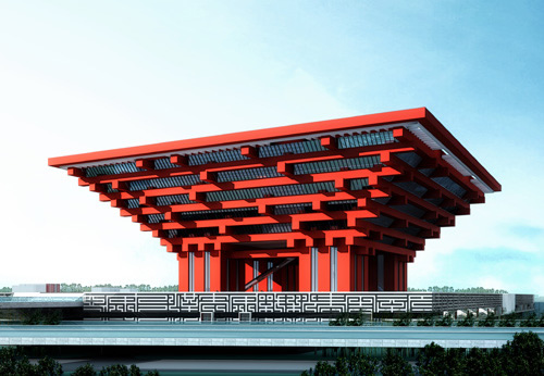 中国馆很美观, 很有特色, 寓义深厚。它由国家馆、地区馆以及港澳台馆三部分组成,是浦东园区内最高的建筑物。其设计理念为 “东方之冠,鼎盛中华,天下粮仓,富庶百姓”。