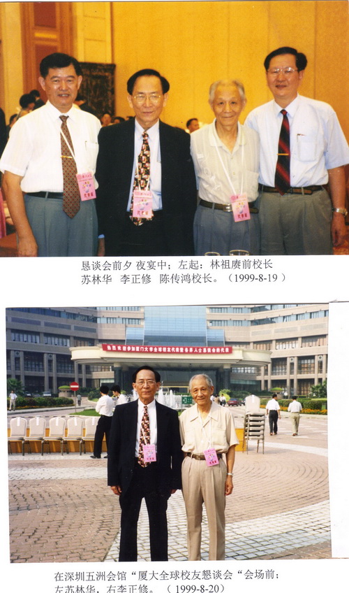 1999年10月间,我俩均受邀参加在深圳市举行之“厦大全球校友代表暨各界人士座谈会”。他因是厦大陈传鸿校长在师大附中时之老师,甚见风光。