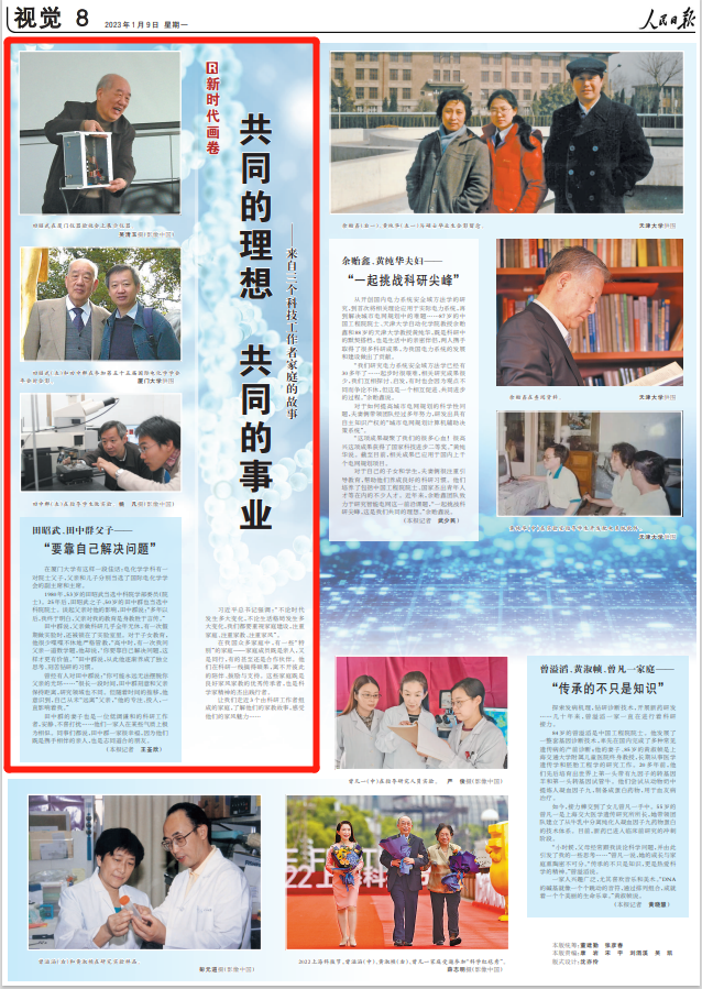 1月9日,《人民日报》刊发通讯报道我校田昭武、田中群父子的家教故事。今天,让我们走近这个由科研工作者组成的家庭,感受他们的家风魅力。