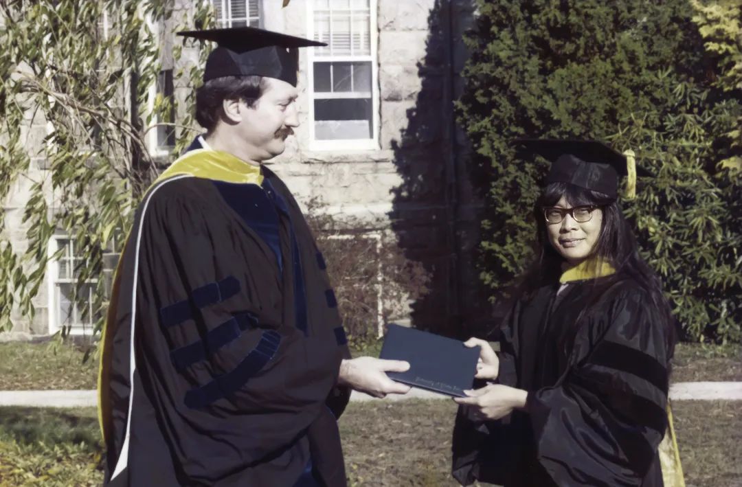 1984年洪华生获得博士学位证书和导师凯斯特教授合影