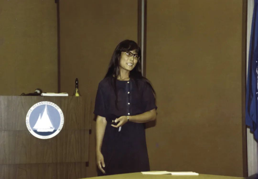 1984年洪华生在美国伍兹霍尔研究所做学术报告