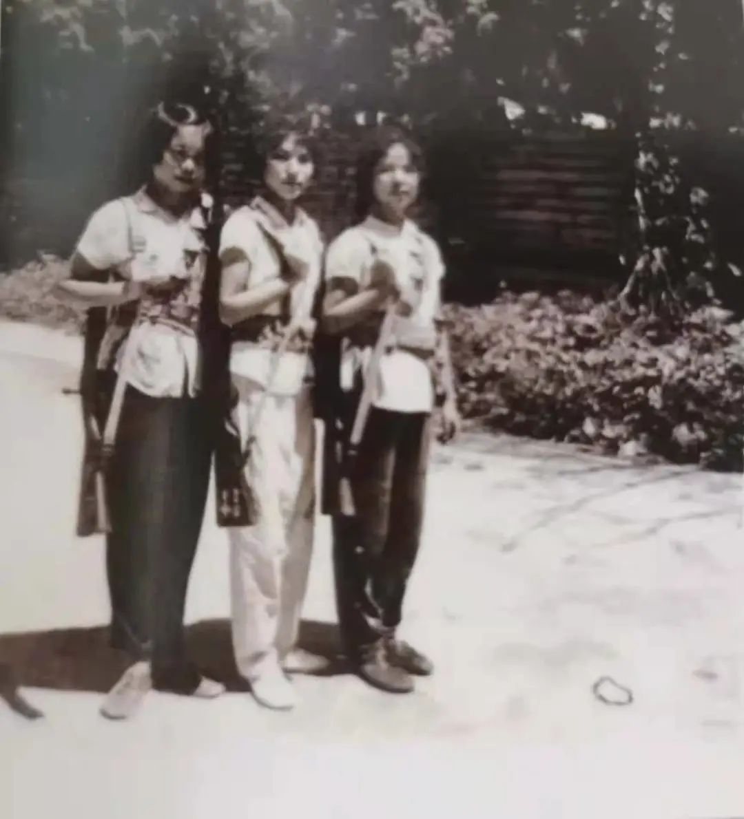 1972年夏,厦大文史系师生与下垵女民兵一起练兵