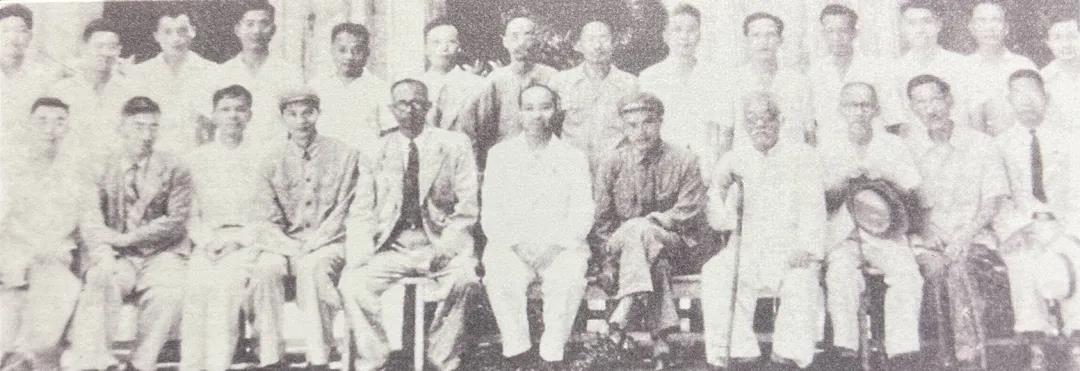 1950年,王亚南(前排左五)就任校长,与军代表吴强(前排左四)、肖枫(前排左七)及师生代表合影