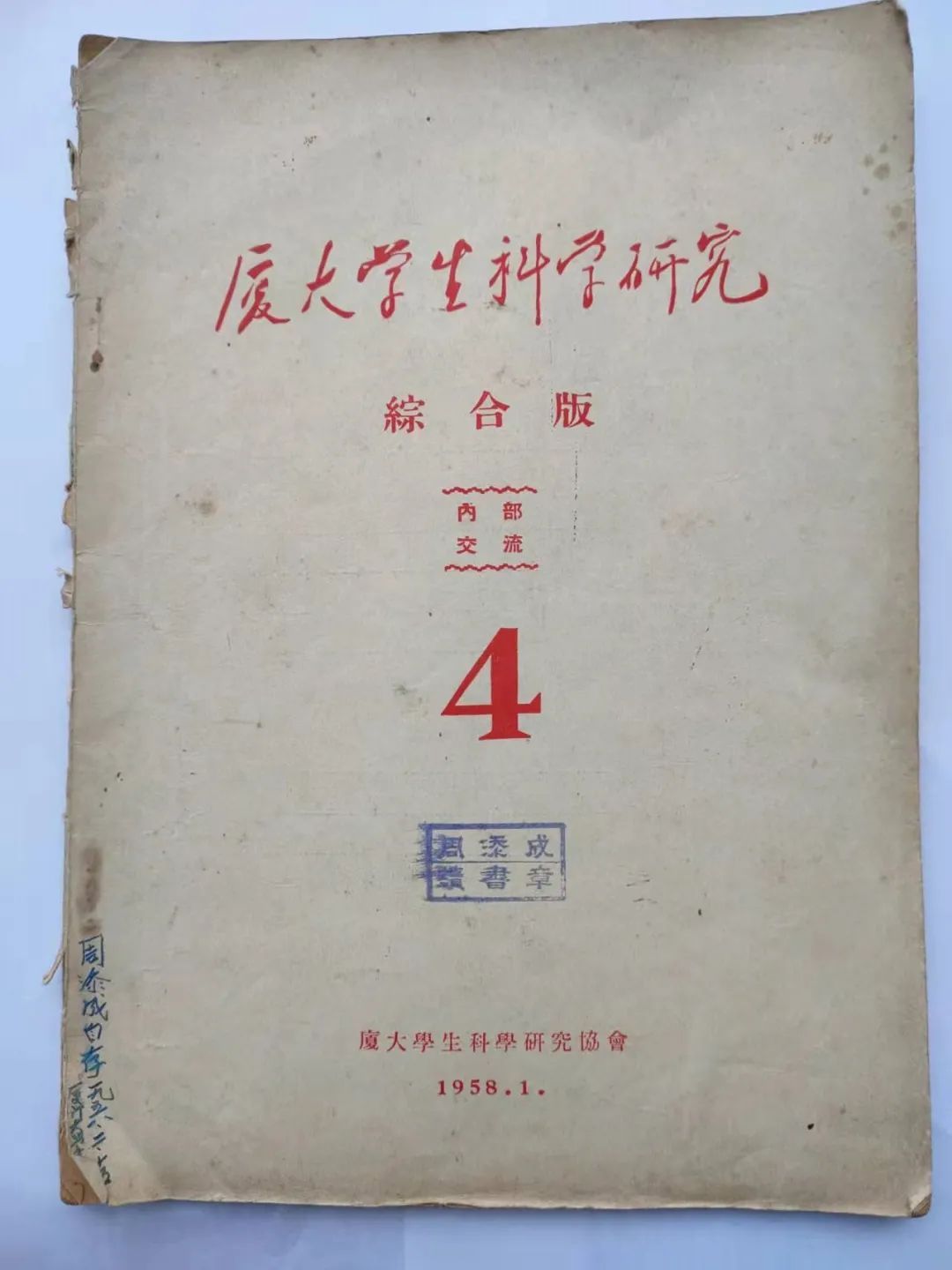 真幸运,进校的第二年,迎来了我国“科学的春天”。1956年,党中央发出了“向科学进军”的我们号召,全国上下,尤其大专院校和科研单位积极响应,掀起一股搞科研的热潮。厦大当然也不例外,全校师生个个摩拳擦掌,踊跃上阵,攻坚克难,勇攀科学高峰。当时我也跃跃欲试,根据自身的特点:一是我来自东南亚,东南亚是我国海外华侨华人较集中的地方,我对那里的情况略知一二;二是我英语基础比较好,因此,确定自己研究方向为东南亚华侨华人问题。而厦大在研究东南亚历史与侨情也具有很多优势:它地处我国东南沿海,靠近南洋;它是侨领陈嘉庚先生出资创办的,与华侨华人有深厚渊源;它有研究东南亚问题的专门研究机构——南洋研究所(现为南洋研究院),可以为研究者提供许多方便。主攻方向定了以后,我制订科研计划。课余时间,我都泡在图书馆与阅览室里,一方面钻研东南亚诸国资料,另一方面阅读翻译外文资料。记得这一段时间,我写了一篇题为《简介“马来纪年”》的文章(刊登在学校学生论文期刊上),翻译了两篇文章,一篇是介绍老挝的国情(未获刊用),另一篇是介绍苏联的一位历史学家的文章(刊在历史系学生论文集上)。我还翻译了两篇短文,都刊在《新厦大》上。这段时间,我最大成绩就是与陈国强、叶文程两位老师合作翻译《史前马来亚》一书,无奈,因为缺乏经费,译稿无法正式出版,只好内部刊印,仅供参考。