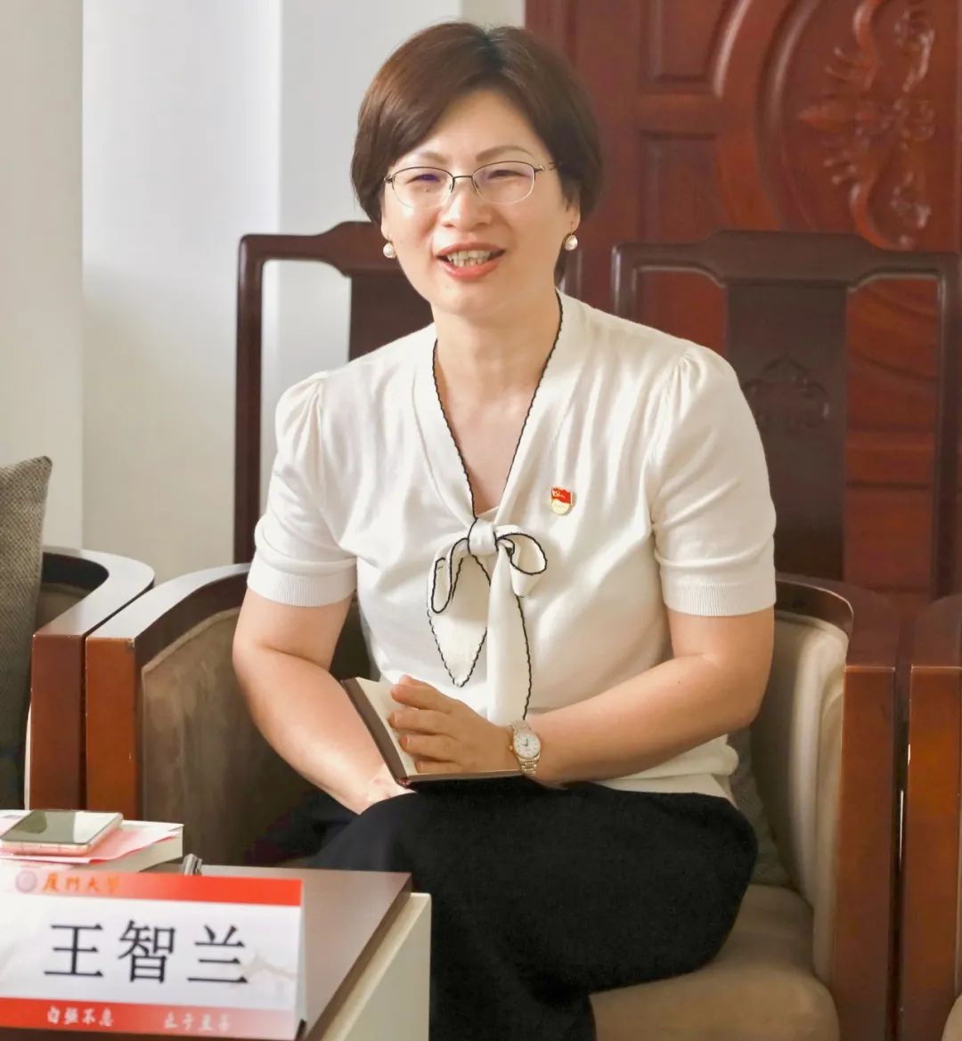 王智兰在讲话中讲述本次共建活动的背景、目标、意义,并提出推进共建活动的意见和建议。她表示,今年是纪念陈嘉庚先生诞辰150周年,校友总会秘书处党支部与中国语言文学系硕士生第二、三党支部开展师生党支部联合共建,旨在充分挖掘、广泛传播陈嘉庚先生的人生故事,大力弘扬、深入践行陈嘉庚先生的崇高精神。她希望双方支部党员通读《陈嘉庚传》,深刻感受校主倾资办学的艰苦、艰辛和坚定;进行延伸阅读和学习,更深入体会厦大百年文化底蕴;通过此次支部共建能够面向全体厦大人推出系列优秀作品。