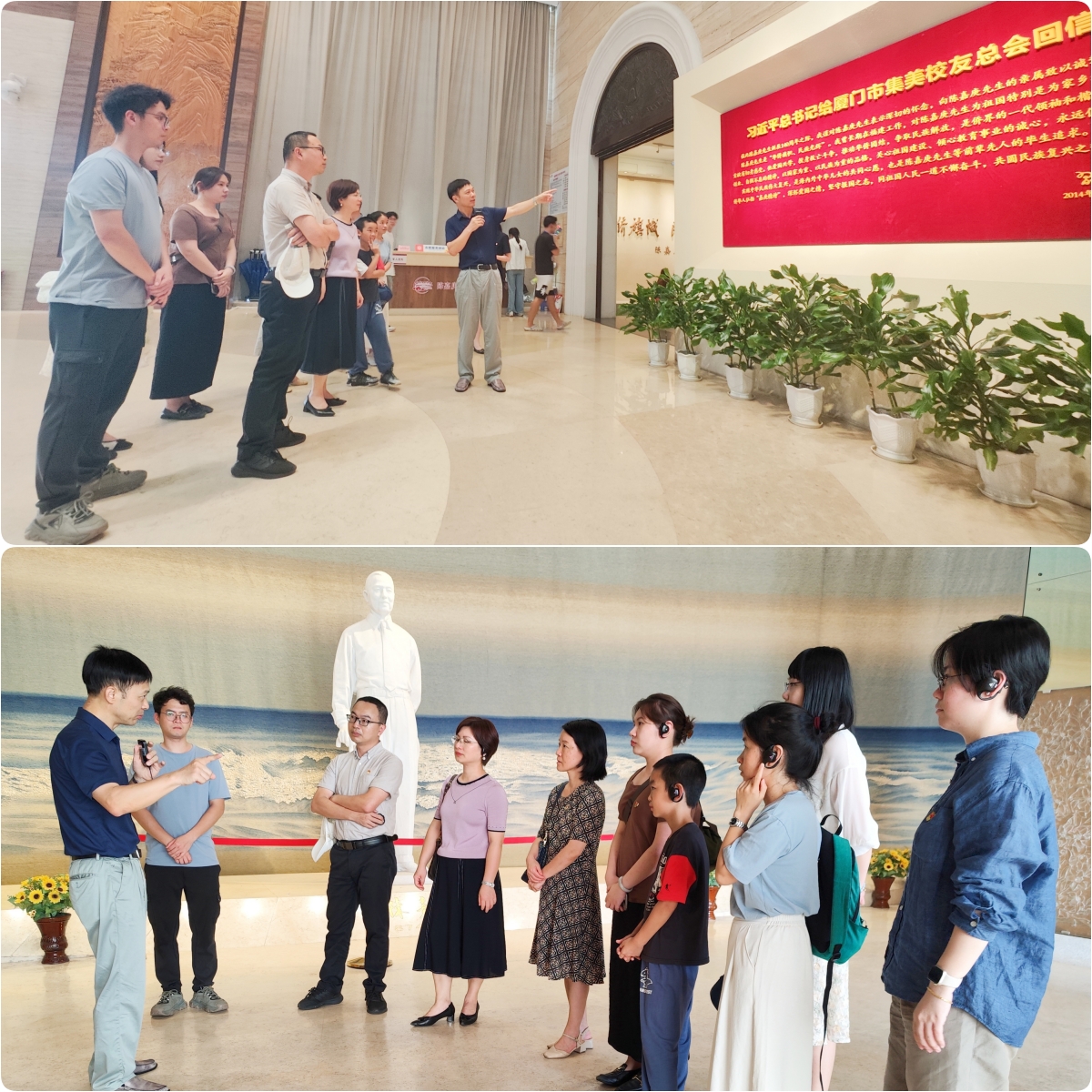 7月11日下午,校友总会秘书处党支部在支部书记王智兰带领下,走进厦门市集美区陈嘉庚纪念馆、鳌园,开展“固定党日+”暨党员基本培训实践教学活动,纪念陈嘉庚先生诞辰150周年,感悟陈嘉庚先生艰苦创业、自强不息的精神,以国家为重、以民族为重的品格和关心祖国建设、倾心教育事业的诚心。活动得到集美学校委员会大力支持。