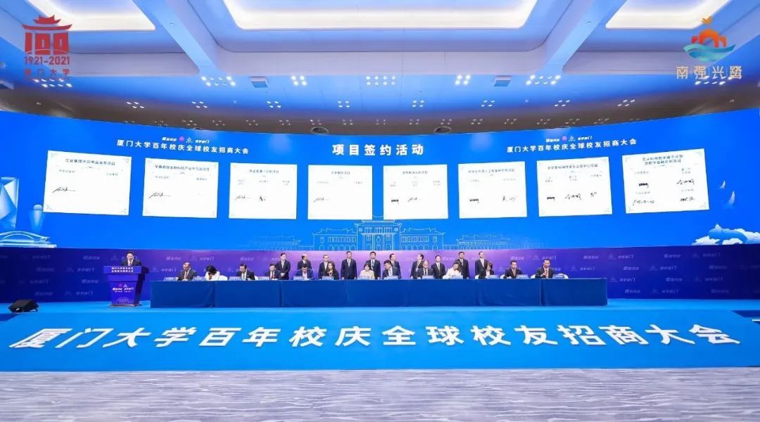 2021年4月7日,厦门大学百年校庆全球校友招商大会在厦门国际会展中心隆重召开。群贤毕至、高朋满座,市校领导深度参与,取得了丰硕成果。据不完全统计,截至2022年3月14日,共入库校友招商项目1096个,总投资额2609.05亿元,其中落地项目633个,落地项目总投资1026.77亿元。