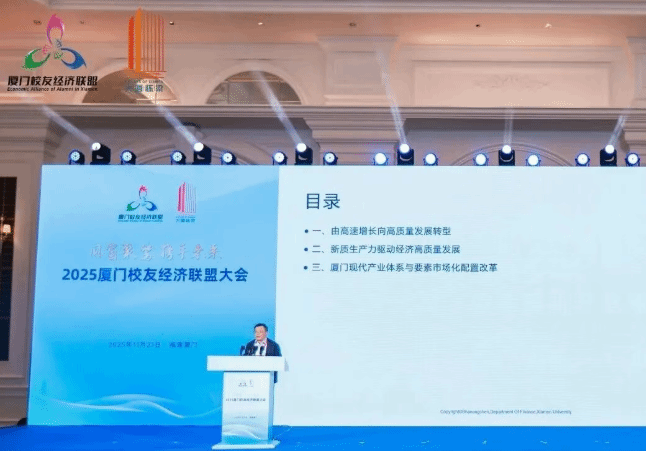 厦门始终将校友视为城市发展的高端战略资源,全力推动“母校+校友+城市”同频共振。校友经济已成为赋能厦门高质量发展、加快形成新质生产力的强劲动力。产业是校友经济扎根的基石,今日之厦门产业基础雄厚、配套完善,为校友投资兴业提供广阔天地;创新是校友经济的灵魂,今日之厦门着力营造一流的创新创业生态,热切期盼校友发挥智力优势,推动科技成果在厦转化;开放是厦门的底色,今日之厦门加快打造新发展格局节点城市,为校友企业搭建链接全球的优质平台。希望校友成为厦门发展的“合伙人”和“代言人”,厦门将一如既往提供全周期、全方位的服务保障,与大家携手共创校友经济新辉煌。