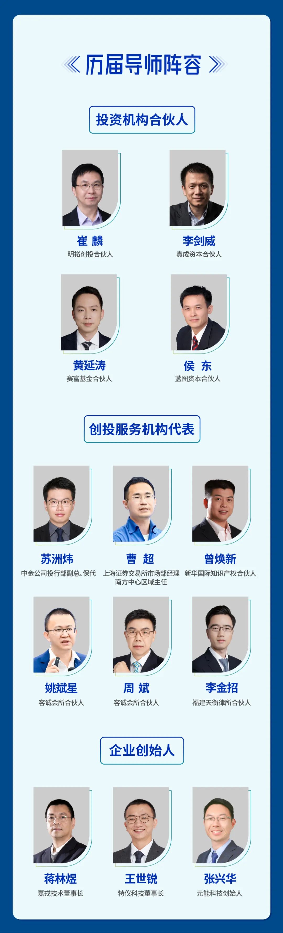 本届创业成长营以先进技术科技类创业项目为主,特别关注航空航天、生物医药医疗、半导体智能传感、高端制造、新能源、新材料等硬科技、卡脖子的技术领域。本届创业成长营报名项目不限地域,将在全国范围内寻找优质创业项目,并在厦门、上海、合肥三地进行项目路演选拔。