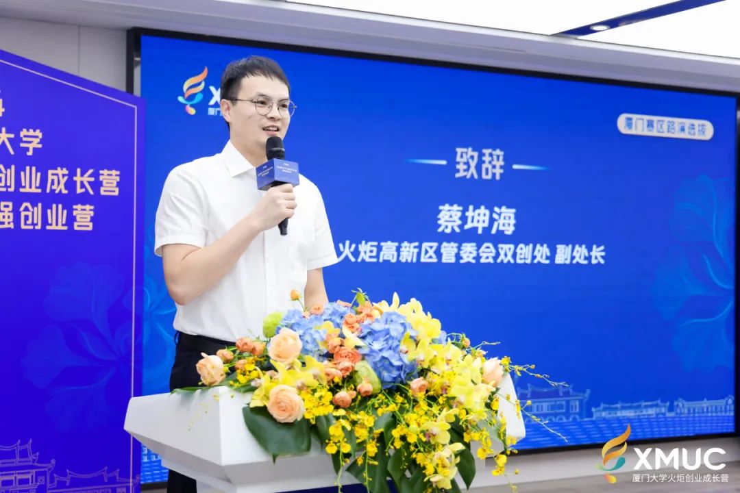 厦门火炬高新区管委会双创处副处长蔡坤海为活动开场致辞,他提到厦门火炬高新区在国家级高新区中排名第11位,拥有超2.9万家企业(其中国家级高新技术企业超1700家,占厦门市超42%;境内外上市公司68家),以占厦门不到3%的土地面积,实现了厦门超42%的工业产值。
