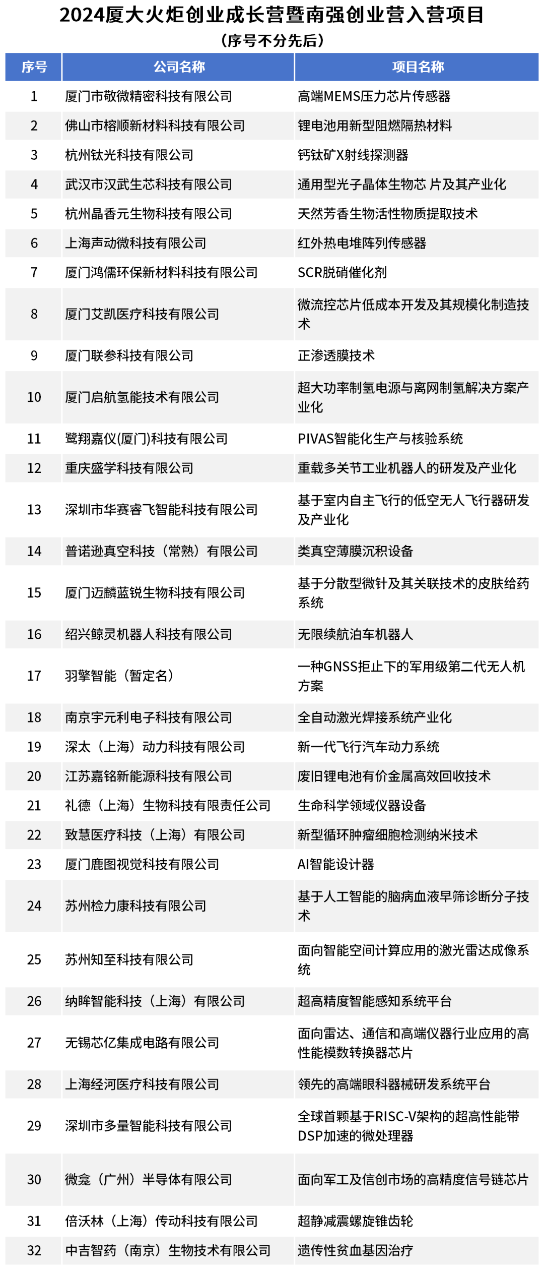 2024厦门大学火炬创业成长营暨南强创业营一直以支持早中期硬科技项目为目标,特别关注航空航天、生物医药医疗、电子信息、半导体智能传感、高端制造、新能源、新材料等领域。已吸引了全国242个硬科技项目报名,项目既有来自厦大校友的科技创业项目,也吸引了众多国内国外知名高校毕业校友的项目。