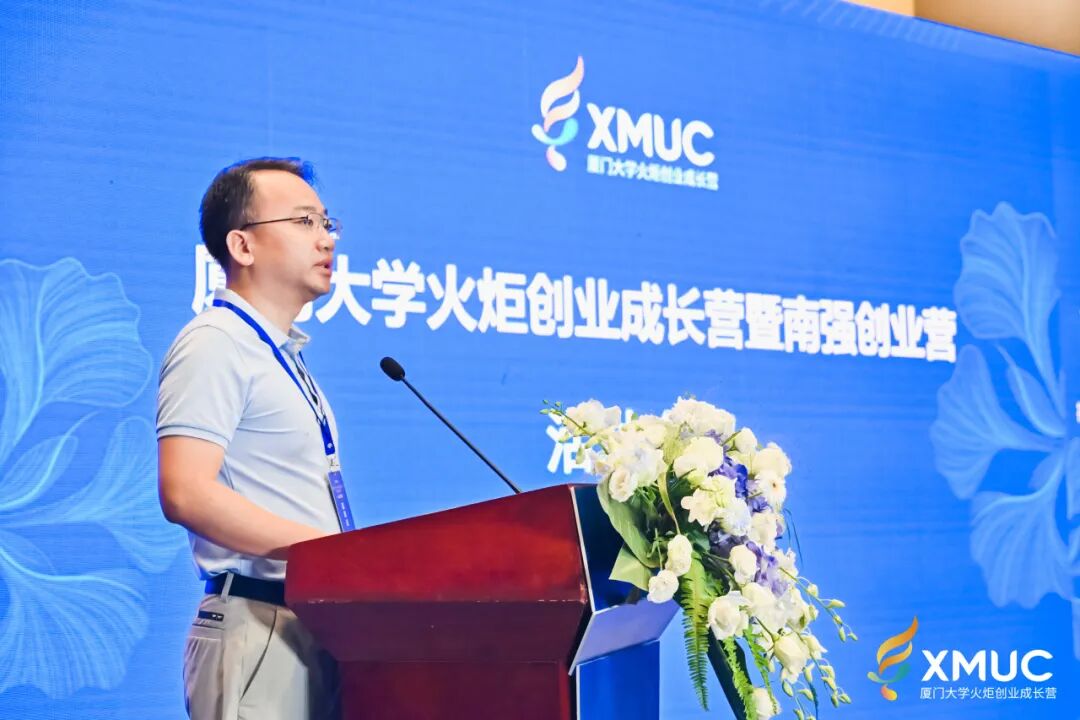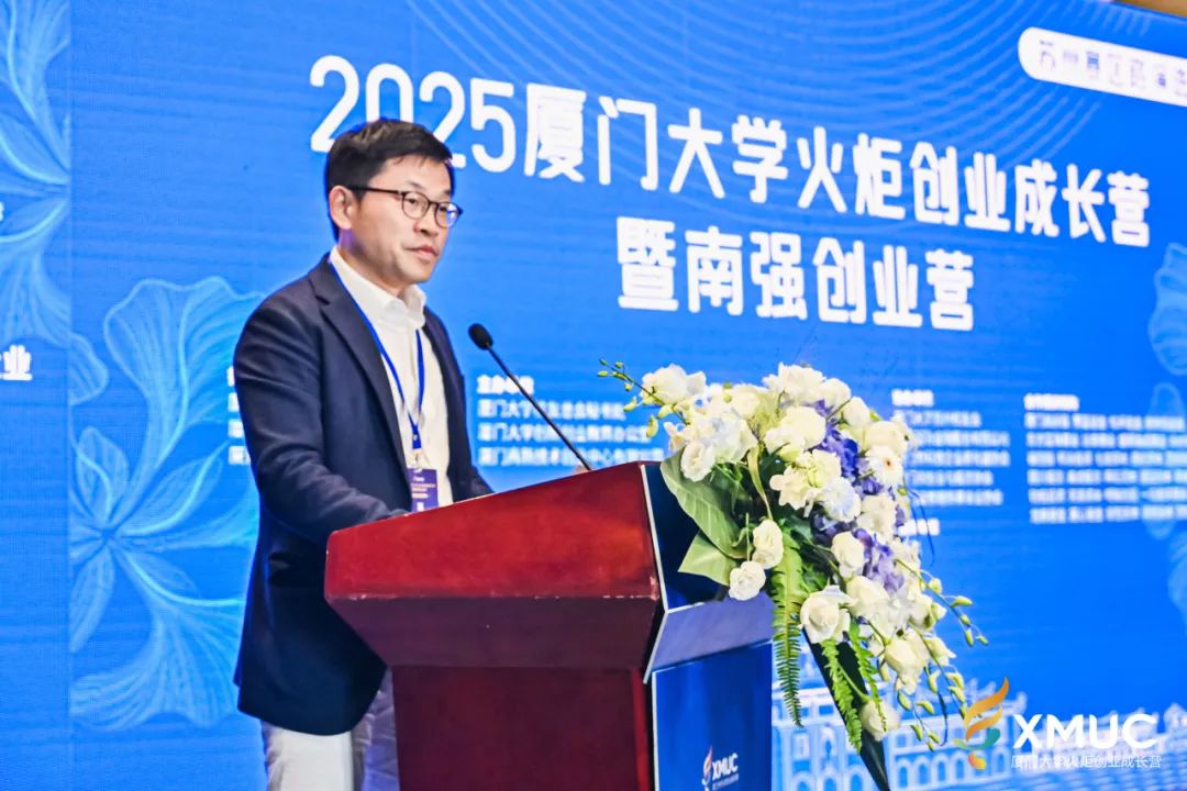 受校友总会委托,他表示,在全球科技创新浪潮下,厦门大学以 “自强不息、止于至善” 校训培养创新人才,呼应国家 “加快建设教育强国、科技强国、人才强国” 战略。厦大火炬创业成长营为双创项目搭建平台,助力人才培育、成果转化、产学研融合,服务国家和区域经济发展。
