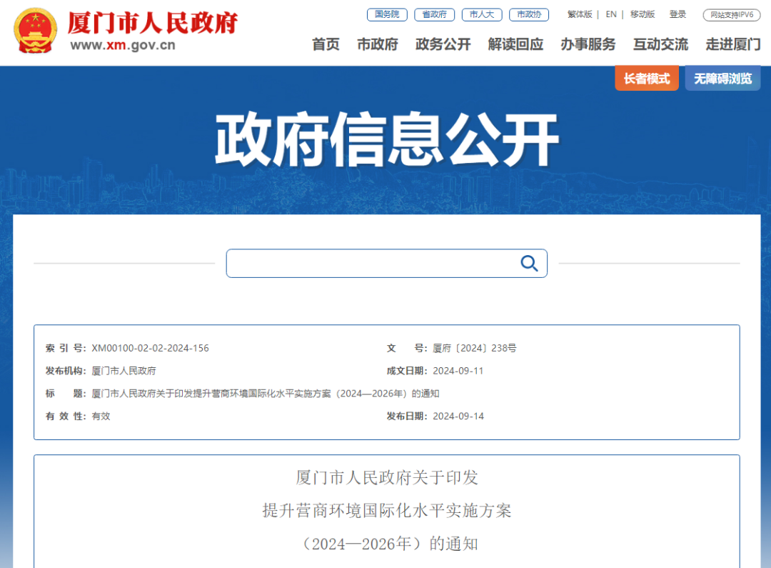 近日,一个事关厦门营商环境的重磅政策推出。经市政府同意,《厦门市提升营商环境国际化水平实施方案(2024—2026年)》(以下简称《实施方案》)正式印发。