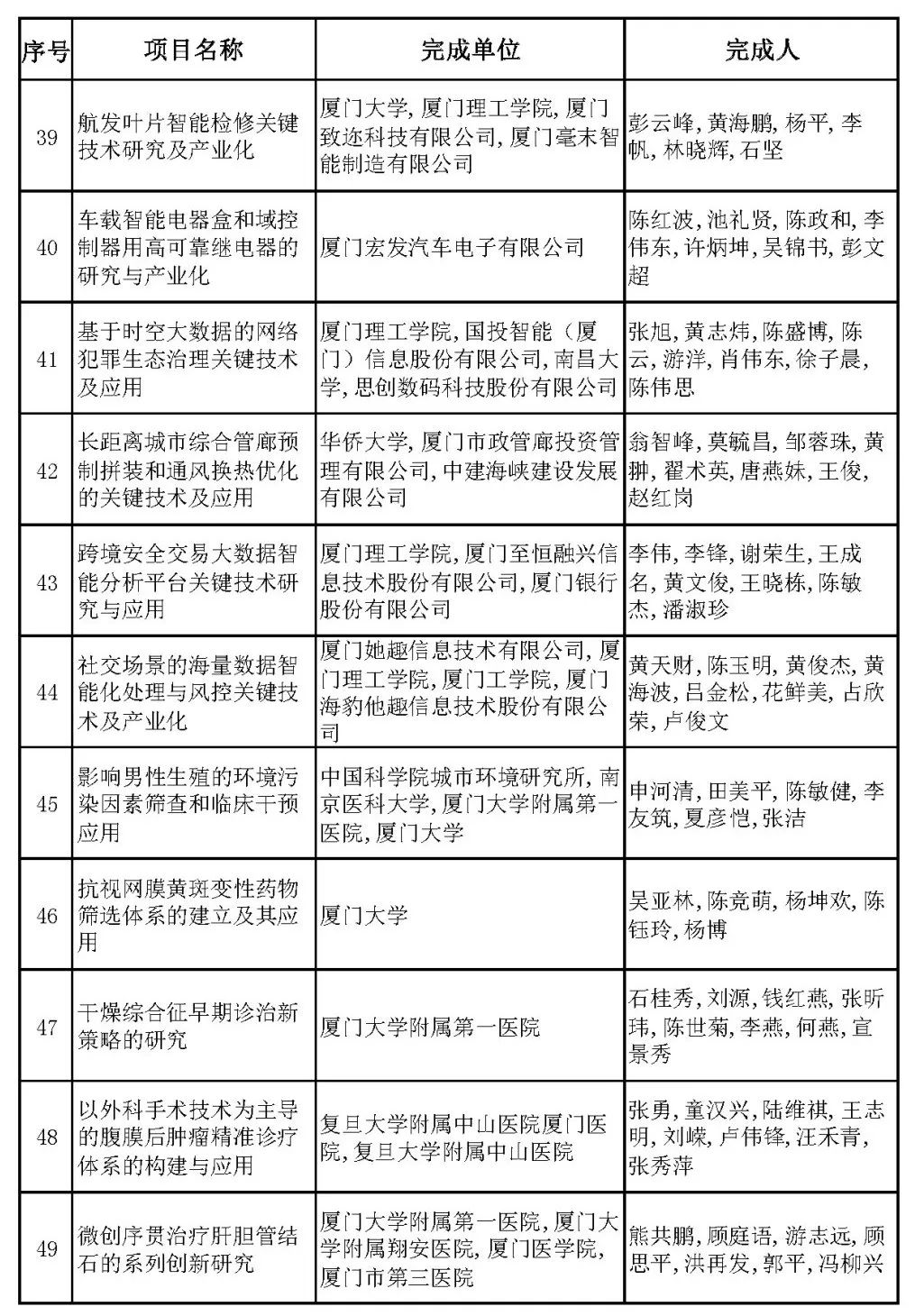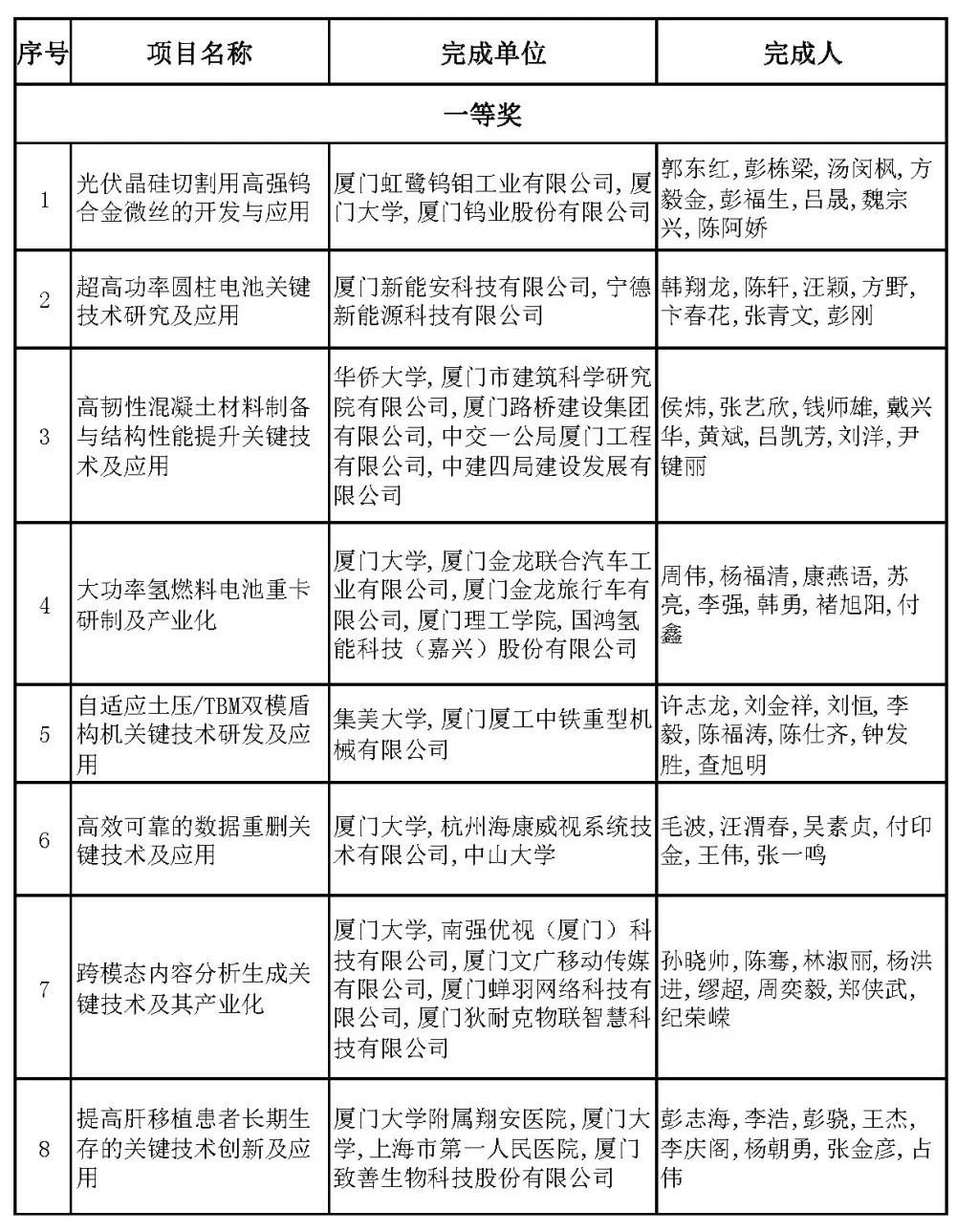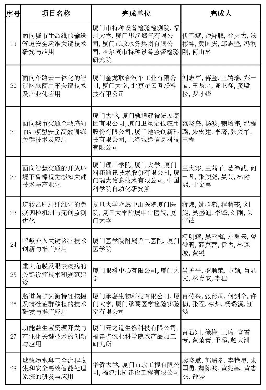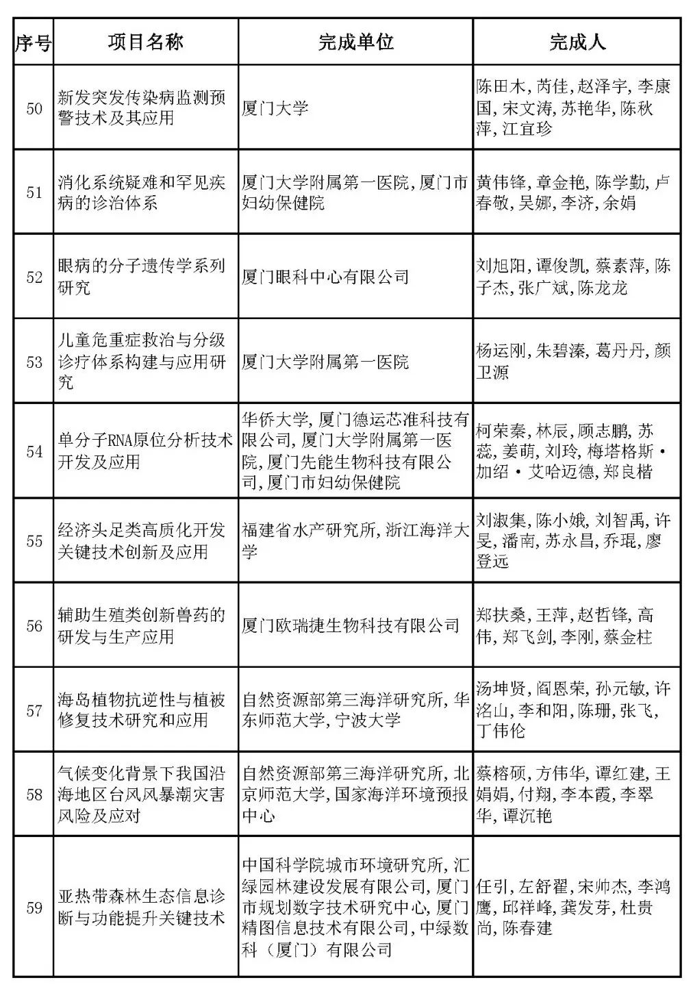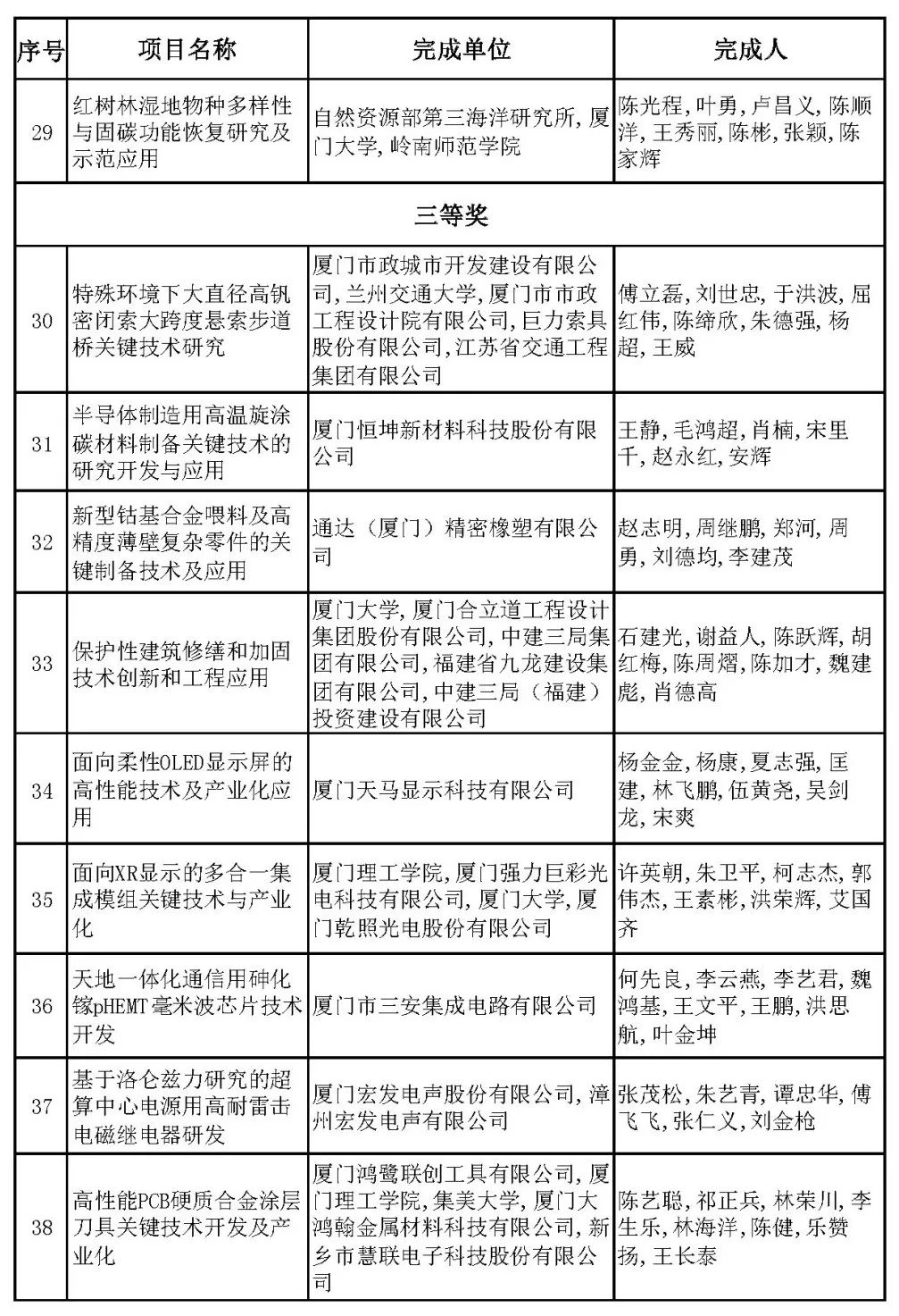 2024年度厦门市科学技术进步奖近日公布