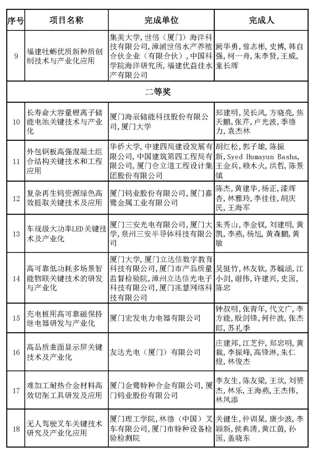 获奖的59项成果中,企业为主或参与的成果有44项,占比75%,表明企业成为科技创新的主体,产学研协同创新机制日趋完善,科技创新与产业创新正在加速融合。如厦门海辰储能的锂离子储能电池、三安光电的车规级大功率LED等项目均由企业牵头,通过与高校联合研发,有效打通了创新链与产业链,加速了新技术的产业化。