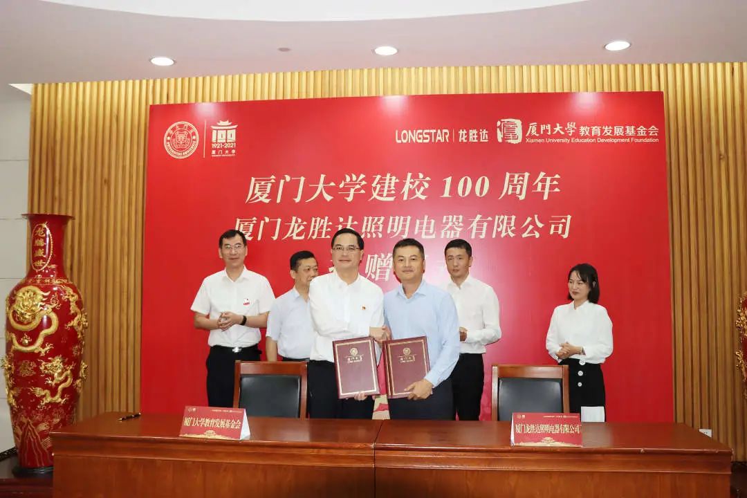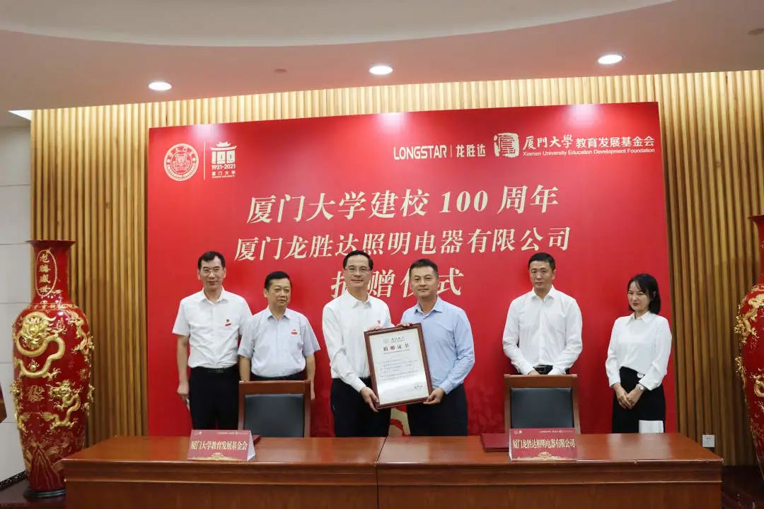 厦门龙胜达照明电器有限公司成立于2002年,是厦门100强重点工业企业,主要研制销售高效LED光源及照明产品,主要市场为北美等高端市场。公司于2019年获评为厦门首批“三高”企业,系列产品获得多家国际权威机构认证。李希龙校友始终心系教育、情系母校。去年9月25日,他就代表企业慷慨捐赠1000万元,设立“龙胜达教育基金”,献礼母校百年校庆。