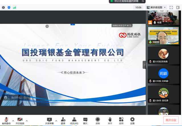 交流会伊始,周颖刚教授先是对能够“云走访”国投瑞银基金表示真挚感谢,并指出厦大经济学科高度重视毕业生就业工作,希望能以本次交流会为契机,与国投瑞银基金加强在人才培养、理论研究、智库建设等多个领域的务实合作,开启校企合作新篇章。