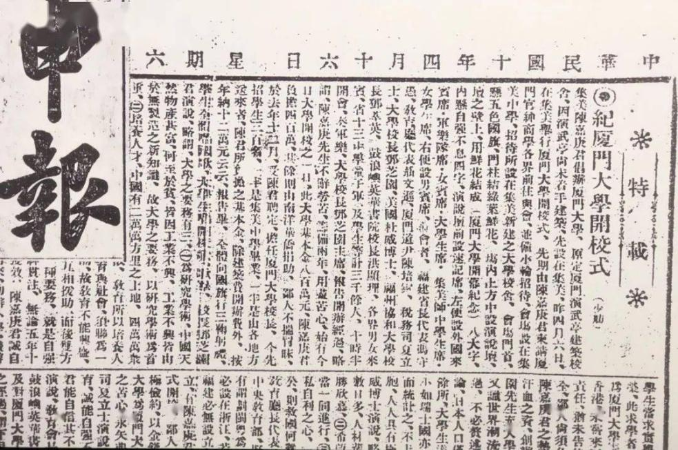 一九二一年四月十六日 上海《申报》报道厦门大学开校式特辑