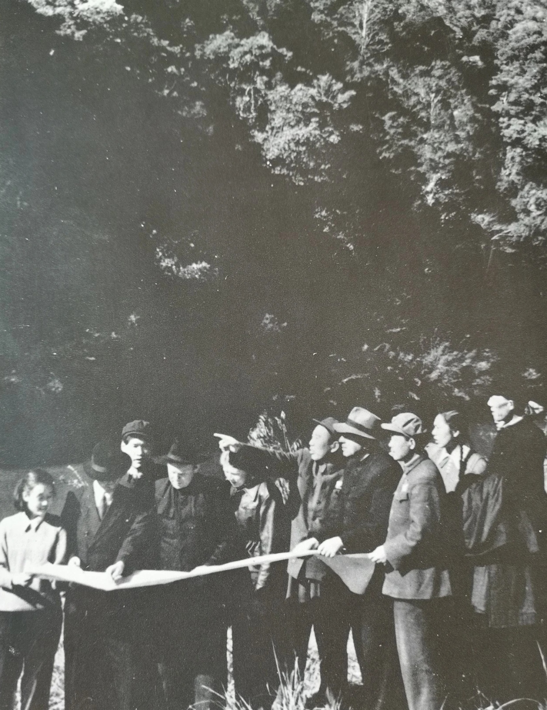 王震司令员和中苏技术人员在鹰厦铁路崇山峻岭现场办公 一九五五年二月,在寒冷的天气中,鹰厦铁路的爆破声、哨声、开山凿洞声开始响起,此起彼伏,组成闽赣大地的建设交响曲。从朝鲜战场上开回来的人民解放军铁道兵部队,在闽赣的崇山峻岭中开凿隧道、搭建桥梁、铺设铁轨,逢山开路,遇水架桥,挖出了四十六条隧道,建造了一千九百七十三座桥梁涵洞(其中桥一百六十三座)、两条十华里长的海堤,挖填土石方六千五百多个劳动日,从一九五五年八月二十日铺下第一根钢轨,到一九五六年十二月十日铺轨到厦门,铁道兵以平均一天建一公里多铁路的速度,完成了全长六百九十四公里的鹰厦铁路,于一九五六年十二月九日完成全部工程,鹰厦铁路建设在中央的直接领导下,在中国人民解放军的艰苦奋斗下,比原计划提前一年建成,全线修建经费折合四百多万两黄金。一九五七年四月十二日中午十二时,从厦门开出第一列北上客车,建设者与人民群众欢呼雀跃,福建没有一寸铁路的历史结束了,半个世纪以来华侨的梦想实现了。四十位从海外赶回来的华侨乘上这第一列从鹭江边开出的火车,兴奋地随车北上,列车上的侨胞李禧先生即兴作诗一首: