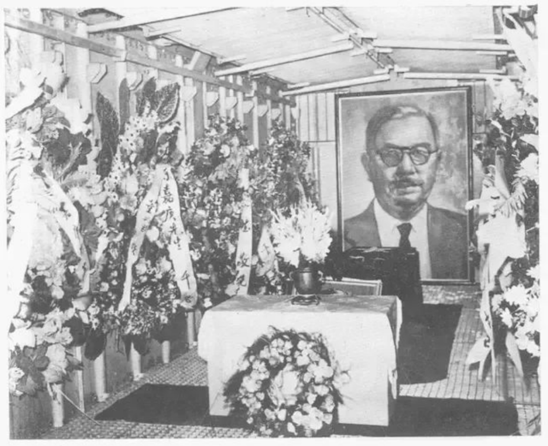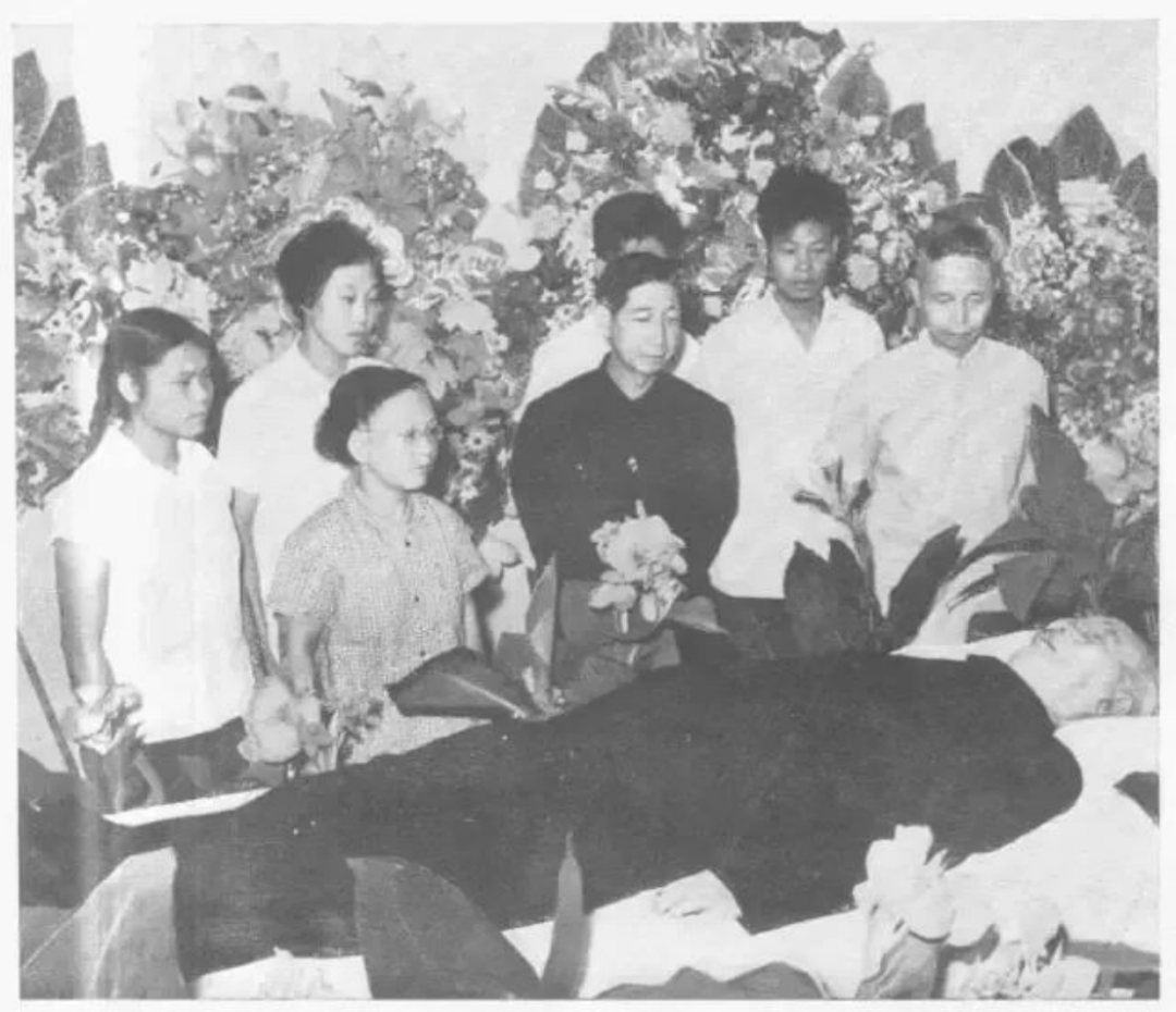 陈嘉庚先生在北京逝世,其八子陈国怀(穿黑衣者)随侍在侧