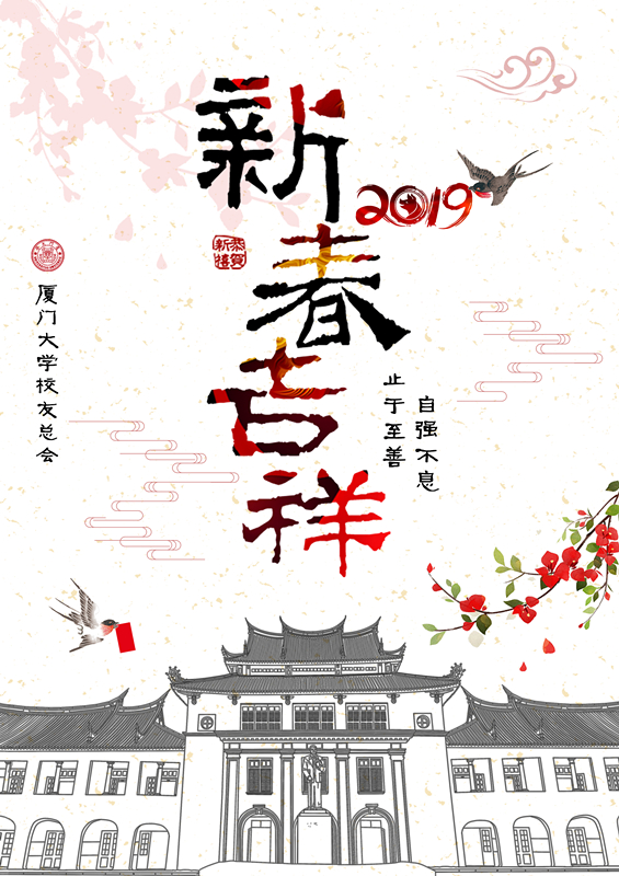 由厦门大学校友总会主办的厦门大学2019校友新年电子贺卡设计大赛旨在发扬厦门大学四种精神,激发广大师生、校友的创新精神和创造能力,为校友们设计电子贺卡,传递新春祝福。