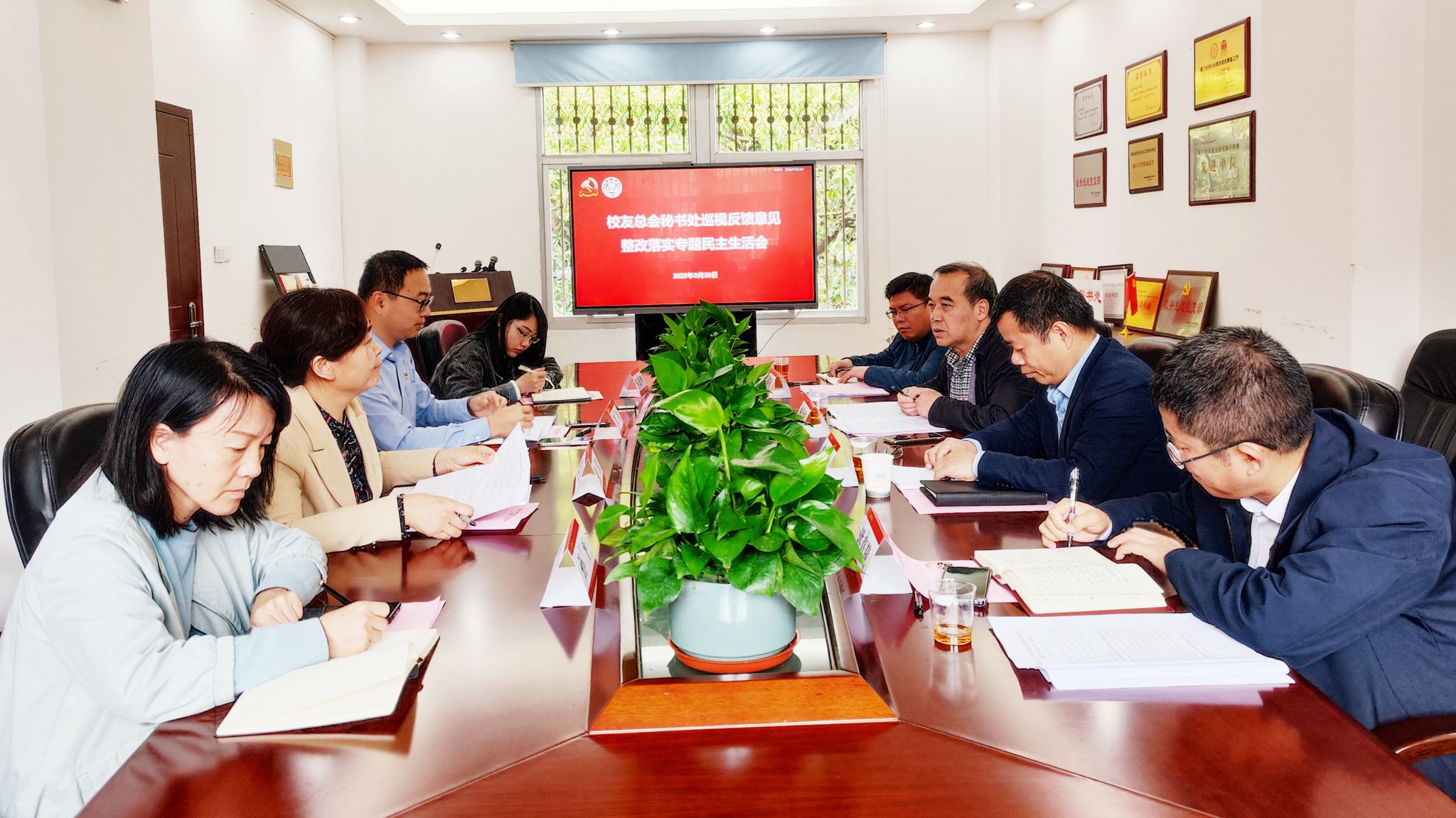 2023年3月30日上午,校友总会秘书处召开第八轮校内巡视反馈意见整改落实专题民主生活会。校党委第一巡视组组长林金枝,纪检监察机构代表第一纪检监察室主任房太伟,组织部门代表校党委组织员兼党建办副主任葛郝锐,巡视办副主任洪真裁莅会指导。会议由校友总会秘书处秘书长张伟主持,科级干部列席会议。