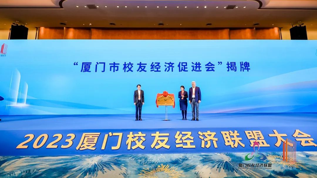 会上,黄晓舟与厦门校促会会长林瑞梅、厦门校促会监事长潘孝贞共同为厦门市校友经济促进会(简称厦门校促会)揭牌。