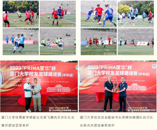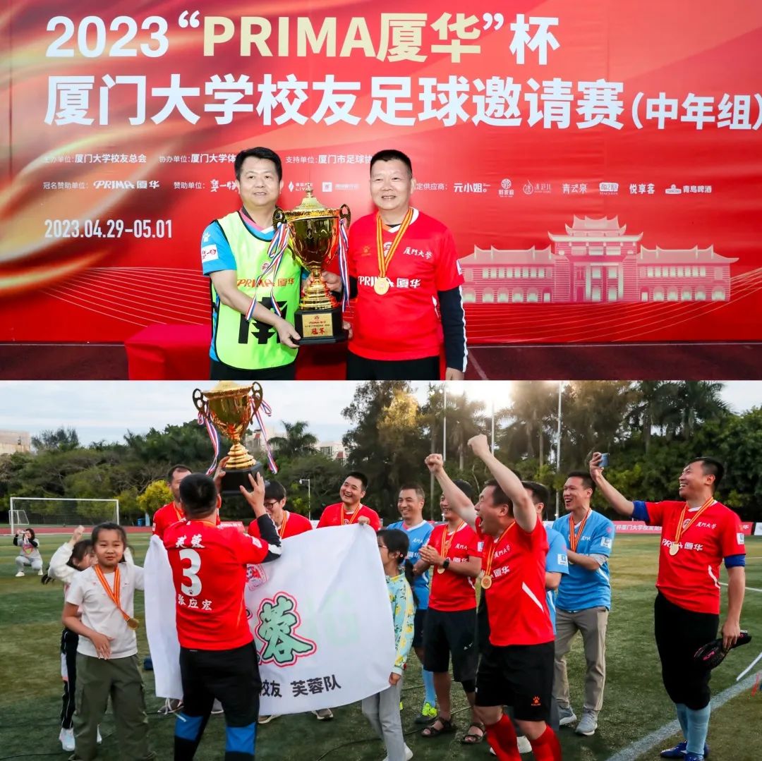 4月29日-5月1日 ,2023“PRIMA厦华杯”厦门大学校友足球邀请赛(中年组)在思明校区上弦场盛大举行,经过三天十三场比赛的激烈角逐,芙蓉队最终胜出,荣获2023“PRIMA厦华杯”厦门大学校友足球邀请赛(中年组)冠军。