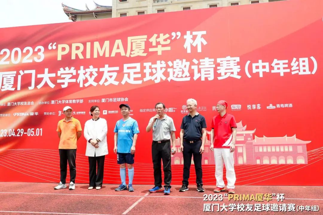 本届“PRIMA厦华杯”校友足球邀请赛由厦门大学校友总会主办、厦门大学体育教学部协办、厦门市足球协会支持。厦门大学党委原常务副书记、校友总会副理事长李建发,校友总会秘书长张伟,厦门大学体育教学部副主任吴飞腾,厦门市足球协会监事长许培新、副秘书长杨敬亭,厦门厦华科技有限公司总经理商永金等嘉宾出席开幕式。开幕式由校友总会副秘书长郑辉主持。
