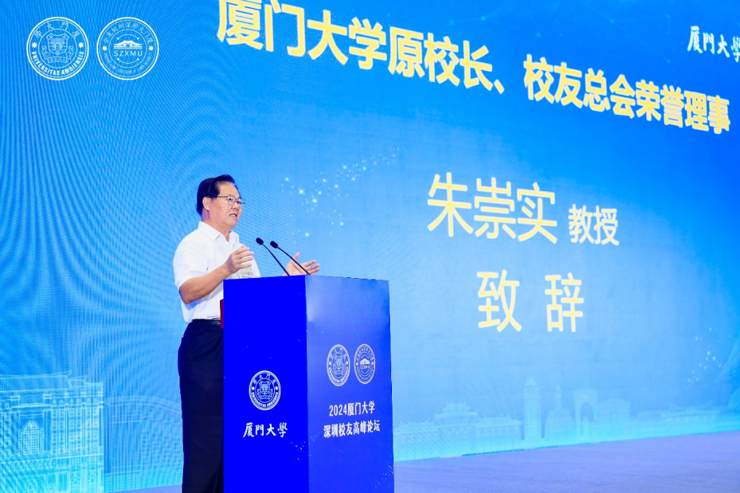 朱崇实在讲话中向厦门大学深圳校友会高峰论坛暨迎新博饼大会顺利召开表示热烈祝贺,向与会嘉宾和全体校友致以诚挚问候。他表示,此次深圳之行,自己看到了一个年轻、充满活力、生机勃勃的深圳;改革开放四十多年,中国发生了翻天覆地的变化,这些变化都能从深圳这座城市看到;厦门大学深圳校友会长期以来对母校建设发展的关心和支持有目共睹。