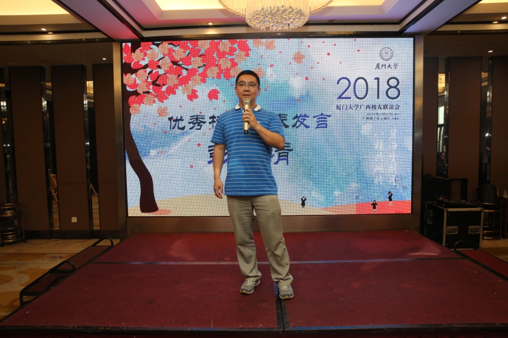 生态学2001级硕士、环境科学2003级博士彭在清与在座校友分享了去年为习近平总书记讲解北海市红树林生态环境保护工作的光荣经历。他勉励在桂选调生不忘初心,吃苦耐劳,服务基层,奉献青春。