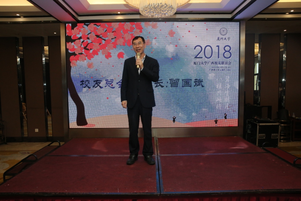 曾国斌在致辞中指出,母校与广西的联系非常密切。双方于2016年签订战略合作协议,在人才培养、科研合作、干部挂职交流等方面开展了多种方式的交流与合作。他鼓励广大校友在各自岗位上发光发热,追求事业进步,提高母校在社会上的美誉度;希望广西校友会进一步加强校友组织建设,强化校友的凝聚力与向心力,不断提升服务校友水平,将校友会打造成为校友们永远的精神家园。