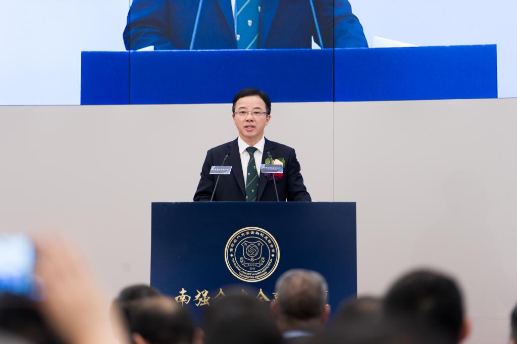 张荣校长在致辞中表示,当前,金融业对国家经济建设和改革开放的重要性愈加凸显。举办高水平的南强全球金融论坛,充分发挥厦大校友、业界翘楚的优势力量,对于支持实体经济的转型,应对内地、香港的金融改革,应对全球经济的挑战,都具有积极作用。他指出,厦大校友在金融领域素有“中国金融界的厦大系”美誉,校友们胸怀感恩之情,成立了全球厦门大学金融校友联合会,并倡议打造助力母校建设发展的群贤基金。希望以此为契机,进一步加强金融校友间的交流与合作,广泛融合社会上关心支持厦大办学发展的资源力量,一同助力厦门大学争创世界一流,推动新时代中国金融业深化改革,乃至服务中国经济和世界经济发展,共创未来中国经济发展波澜壮阔的新篇章。张荣还向与会校友、嘉宾介绍了厦门大学“双一流”建设情况及未来发展规划。