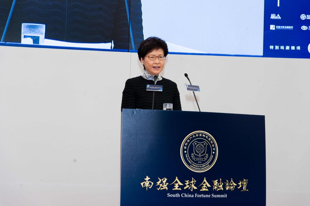 林郑月娥女士在致辞中首先向南强全球金融论坛暨全球厦门大学金融校友会联合会和群贤基金会的成立表示热烈的祝贺!她说,金融业是香港经济发展的重要支柱,国家改革开放40年来,香港金融业受惠于国家发展而成果丰硕。未来为进一步促进内地资本市场对外开放,以及加强香港作为国家全球金融中心的角色,香港应发挥国际金融中心、全球离岸人民币业务枢纽和国际资产管理中心的优势,为国家金融业开放作出重要贡献。同时,香港还将把握好国家发展大局为两地金融服务业改革发展带来的新机遇,为粤港澳大湾区及“一带一路”沿线地区的企业提供离岸人民币业务、项目融资、风险管理、资产管理等相关服务,进一步拓展金融服务范畴。她最后由衷期望全球厦大金融校友联合会能为此作出自己杰出的贡献。