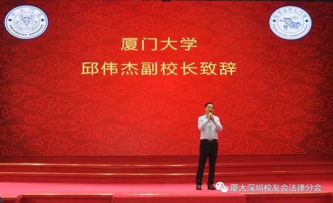 厦门大学校友总会理事长、厦门大学原校长朱崇实,厦门大学副校长邱伟杰出席活动并致辞。朱崇实亲切问候各位在深校友,与大家分享了刚刚在香港成立全球厦门大学金融校友联合会并成功举办“南强全球金融论坛”的喜讯,校友们听闻母校在国际金融界的实力和广泛影响力很受鼓舞。他还介绍了母校学科体系发展、建设世界一流大学的进展情况,表示希望校友会、法律分会发挥独特的优势,为把母校法学专业建设为国际一流学科,把法学院建设为国际一流学院而努力。邱伟杰对深圳校友会法律分会2018迎新联欢会的顺利举办表示祝贺,对厦大法学院在母校学科体系中发挥了重要作用表示充分肯定。