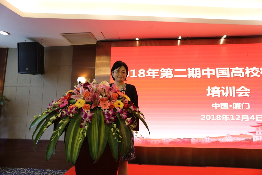 高晓杰代表中国高等教育学会对大会的召开表示热烈祝贺,向大会介绍了学会新一届理事会成立后在高等教育领域进行的学术研究及取得的学术成果,对校友工作研究分会近年来开展了系列课题立项,在校友工作研究中创新研究模式,把研究成果与工作紧密结合给予充分肯定。她表示,本次培训会创新了办会方式,既是一次研讨会,又是一次研究成果的推广会,她对校友工作研究分会、厦门大学校友总会邀请获重大课题立项的课题负责人、专家学者作为培训主讲嘉宾,向广大校友工作者汇报课题进展、推广阶段性研究成果表示高度认可。