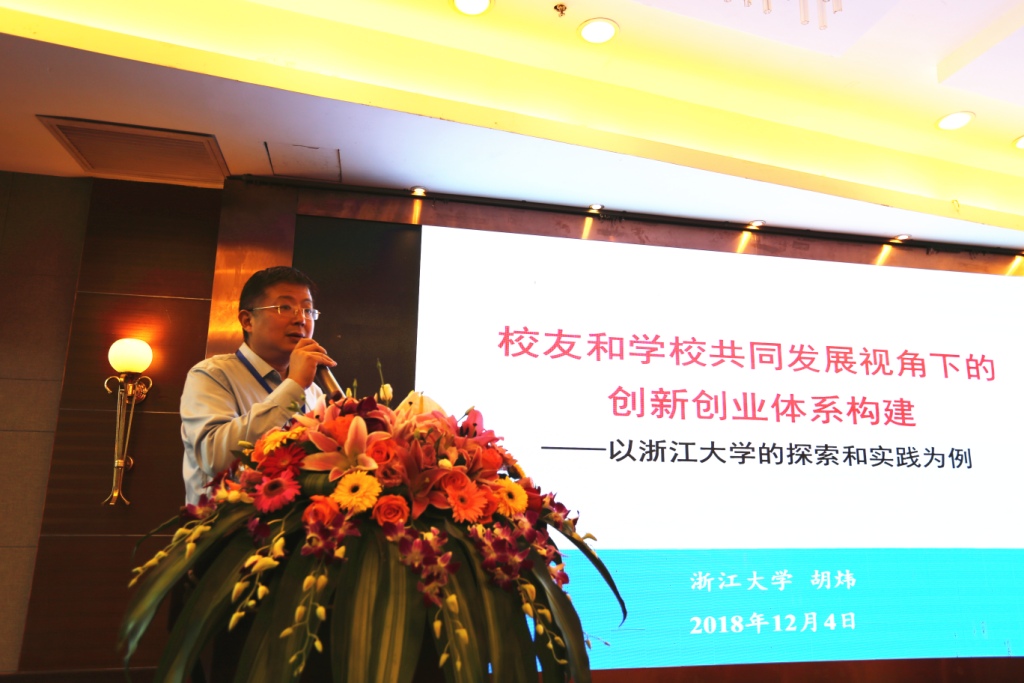 胡炜作“校友和学校共同发展视角下的创新创业体系构建”主题讲座。他结合浙江大学的探索与实践,强调只有贯通科技创新体系、产业创新体系和社会创新需求,链接师生与校友的创业网络,将学校优势学科领域的创新成果转化为可落地的创业项目,以学校强大的创新生态系统为校友创业提供有力支持,同时也将校友智慧、经验、资金、人脉等方面的创业资源导入学校的“双创”体系,从创业导师、空间到基金均提供全方位的有力支持,才能构建起多主体协同创新、价值共创的生态体系,并真正实现校友与学校共同发展。