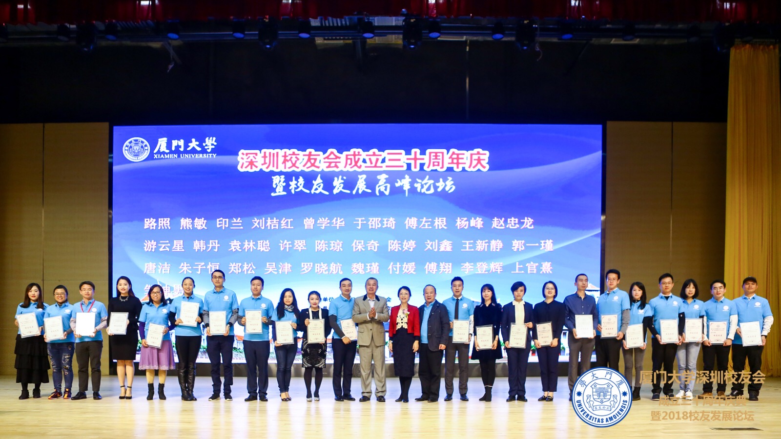 12月14日,厦门大学深圳校友会三十周年庆暨校友发展高峰论坛在深圳举行。厦门大学校友总会理事长朱崇实,副校长、校友总会副理事长邱伟杰,校友总会副理事长潘世墨,校友总会荣誉理事黄良快,校友总会秘书长曾国斌,广东校友会、旅港校友会、北京校友会、厦门校友会、东莞校友会、潮汕校友会、1988级校友联谊会、全球厦门大学金融校友联合会、EMBA深圳校友会等兄弟校友会代表以及在深校友,共计700余人出席了活动。