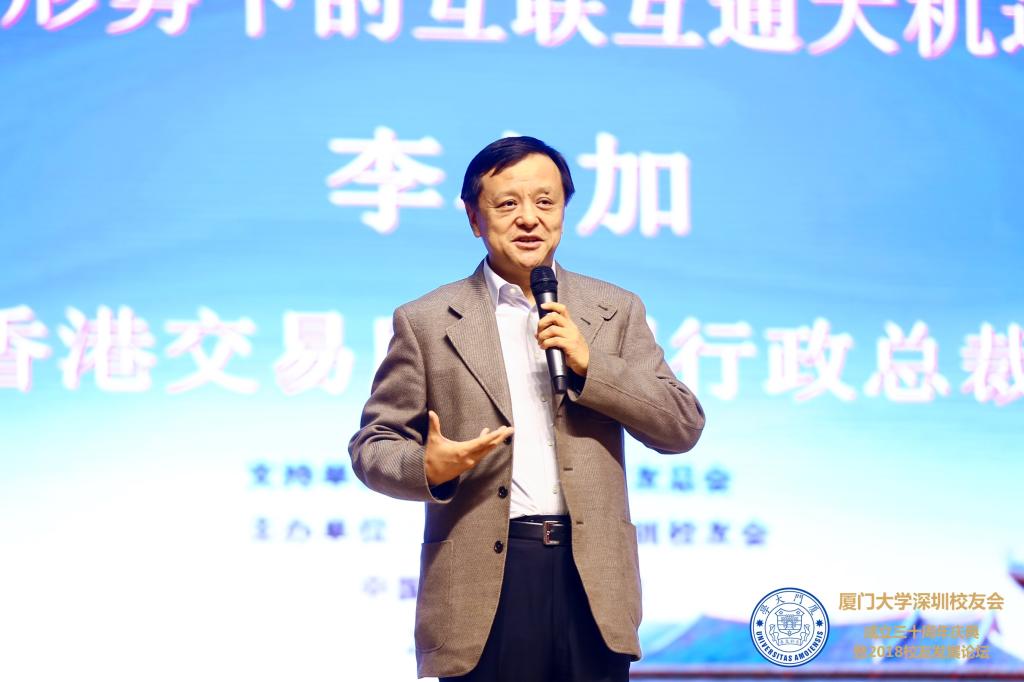庆典最后,1980级外文系校友、港交所总裁李小加为大家带来题为“新形势下的互联互通大机遇”的分享。他用生动诙谐的实例向大家介绍了港交所的基本情况,解读了资本市场互相信任、互通有无的机制,希望在未来充满不确定性的中美两个大国博弈中迎来一个双赢局面。