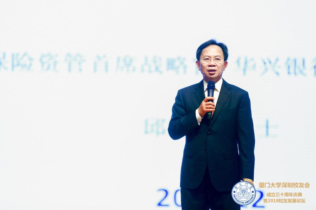 随后,1977级经济系校友、阳光资产管理公司首席战略官、华兴银行首席经济学家邱晓华为大家带来题为“中美贸易摩擦与经济展望”的演讲。他简要分析了2018年中美贸易摩擦事件对中国经济产生的影响,提出了国家在应对国际汇率波动、通胀压力、地缘政治不稳定等问题的建议举措。