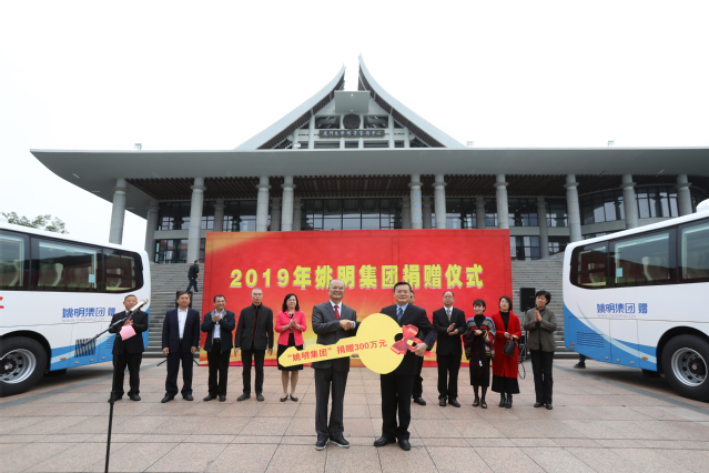 厦门姚明集团、厦门姚明织带、厦门金龙联合汽车工业有限公司,我校工会、资产与后勤事务管理处、保卫处、教育发展基金会、校友总会、后勤集团相关负责人参加捐赠仪式。