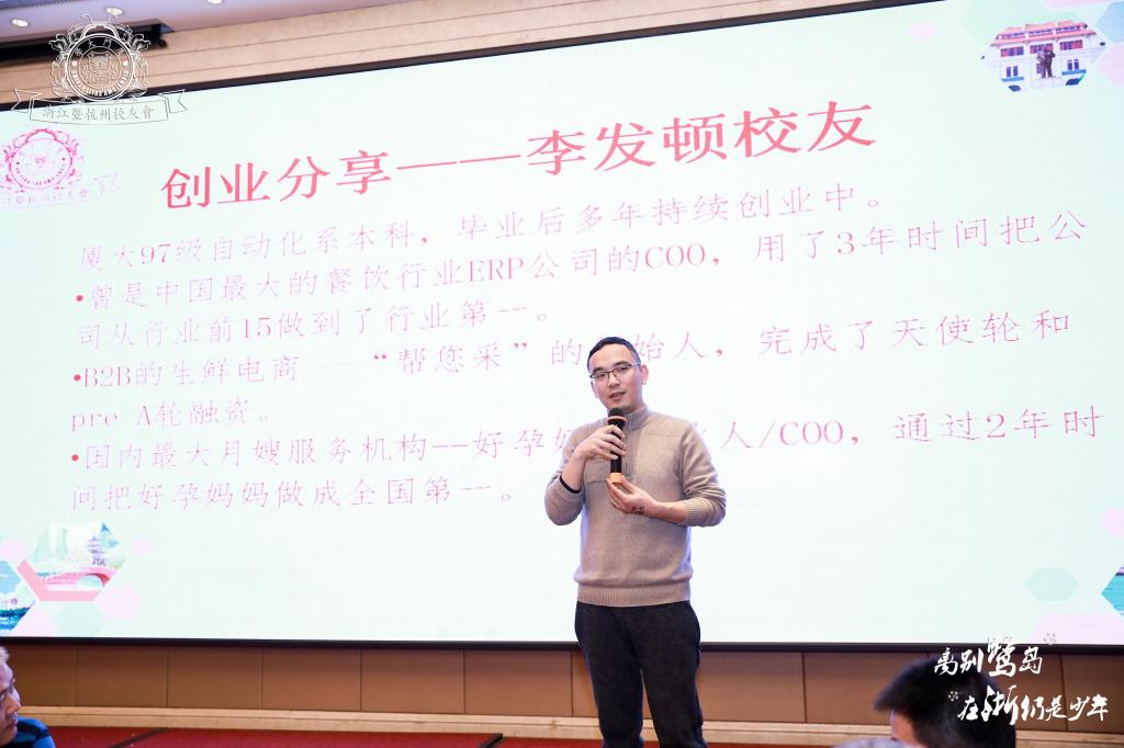 1997级自动化系李发顿校友首先结合自身创业经历,为广大校友尤其是立志创业的师弟师妹分享了创业的宝贵经验。