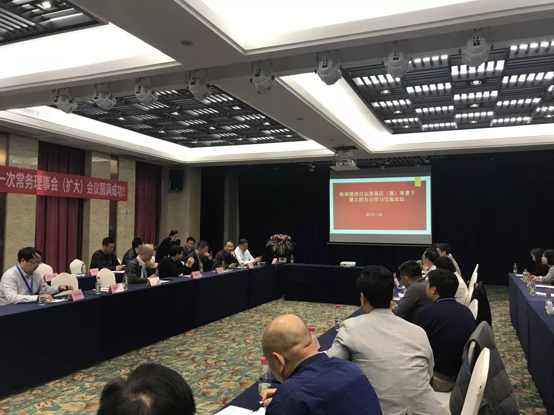 1月19日,厦门大学校友总会2019年第一次常务理事会(扩大)会议在海口顺利召开。本次会议主题为“凝聚校友力量,共话百年校庆”,由海南校友会承办。校友总会理事长朱崇实,荣誉理事王豪杰,副理事长潘世墨、孙世刚、詹心丽,副校长、校友总会副理事长叶世满、邱伟杰,来自北京、上海、福州、厦门、广东、深圳、浙江、香港等地校友会以及校内相关职能部门的常务理事和校友代表参会,交流校友工作经验,共商母校百年校庆方案,凝聚校友力量助力母校建设发展。会议由校友总会秘书长曾国斌主持。