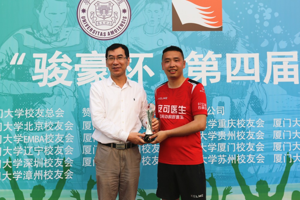 此外,组委会还设立了公平竞赛奖、最佳组织奖、足球先生、最佳射手、最佳守门员等单项奖,丰富了比赛组织形式,提高了校友参与热情。在赛后颁奖典礼上,副校长、校友总会副理事长邱伟杰为佛山校友队颁发了冠军奖杯,校友总会秘书长曾国斌为重庆校友队颁发了亚军奖杯,体育教学部主任陈志伟为美洲校友队颁发了季军奖杯,赛事赞助商代表杨芃为获得公平竞赛奖的福州校友队和获得最佳组织奖的海南校友队颁发纪念奖章。