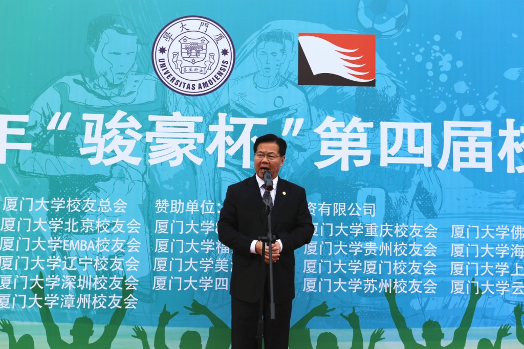 4月6日—7日,厦门大学98周年校庆期间,由校友总会主办的“骏豪杯”第四届校友足球邀请赛在演武场、上弦场举行,本届赛事共有来自全球各地21支校友会球队、400余名校友返校参赛。厦门大学原校长、校友总会理事长朱崇实出席开幕式并为比赛开球。