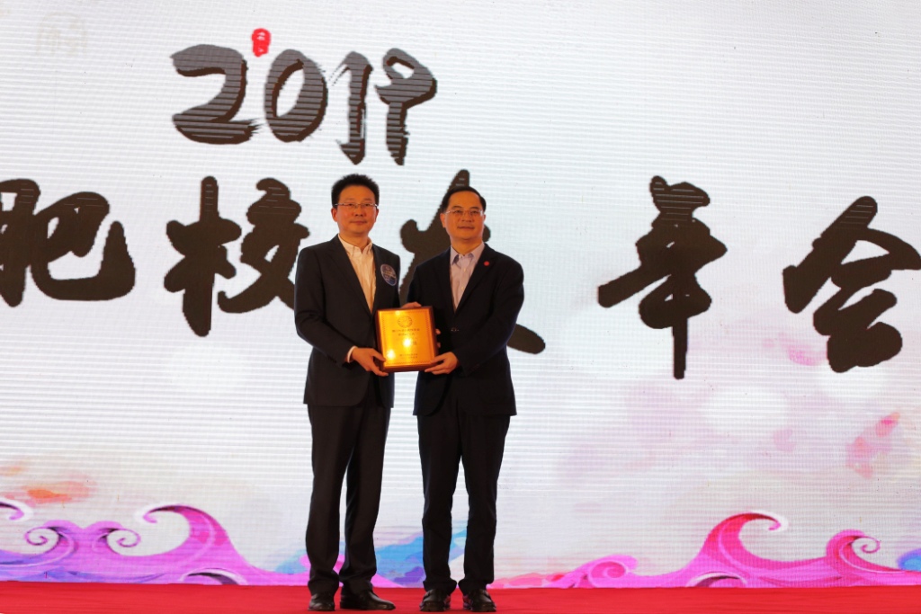 邱伟杰为合肥校友会授“厦门大学合肥校友会”会旗,并向陆勤毅授予“厦大校友服务奖”荣誉纪念杯,以表彰他为合肥校友会所做的奉献,向新一届会长张晓健授予“厦门大学合肥校友会第四届会长”铭牌。